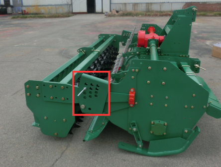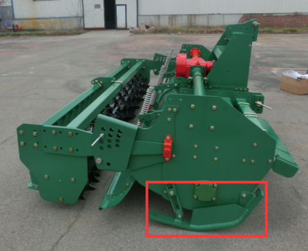 在機具的右側制定成后護板,護板上制定成有壓簧,如圖甲所顯示4所顯示,后護板的制定成做到平整的作用,也有用有效保障了旋耕后空氣中的平整度;護板做到遮掉嚴重破壞的刀片圖片不飛出傷到人,還對壓減臟污飛騰有較著后果,所以壓減臟污靜化。